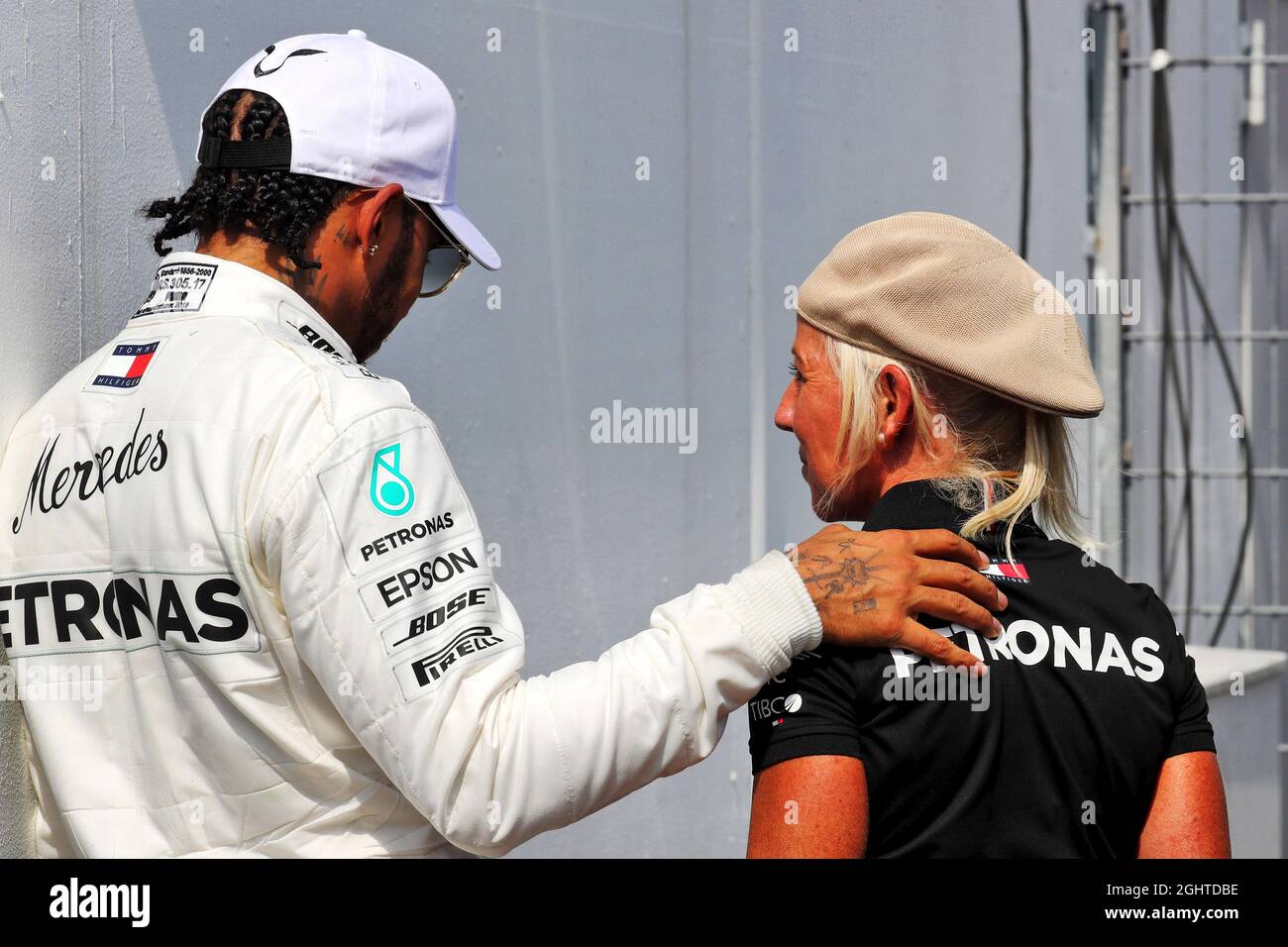 Lewis Hamilton Gbr Mercedes Amg F1 Mit Angela Cullen Nzl Mercedes Amg F1 Physiotherapeutin Im Qualifying Parc Ferme 27 07 2019 Formel 1 Weltmeisterschaft Rd 11 Grosser Preis Von Deutschland Hockenheim Deutschland Qualifizierender Tag
